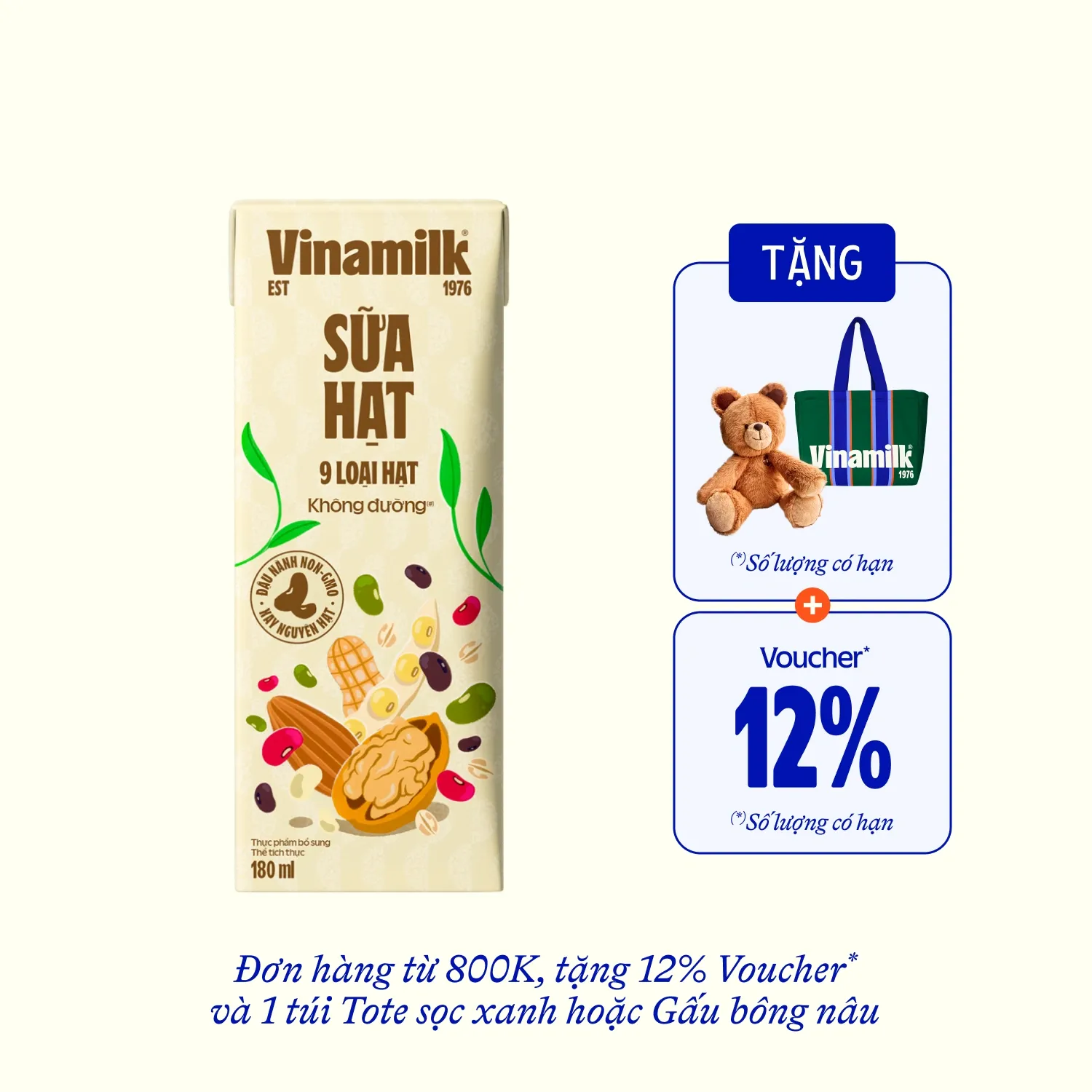 9 loại hạt cao cấp: hạnh nhân, hạt óc chó, yến mạch, đậu nành, đậu đỏ, đậu đen, đậu trắng, đậu xanh, đậu phộng kết hợp hài hòa trong sữa 9 loại hạt, tạo nên hương vị sữa hạt rang thơm béo bùi, đậm đà thơm ngon.
